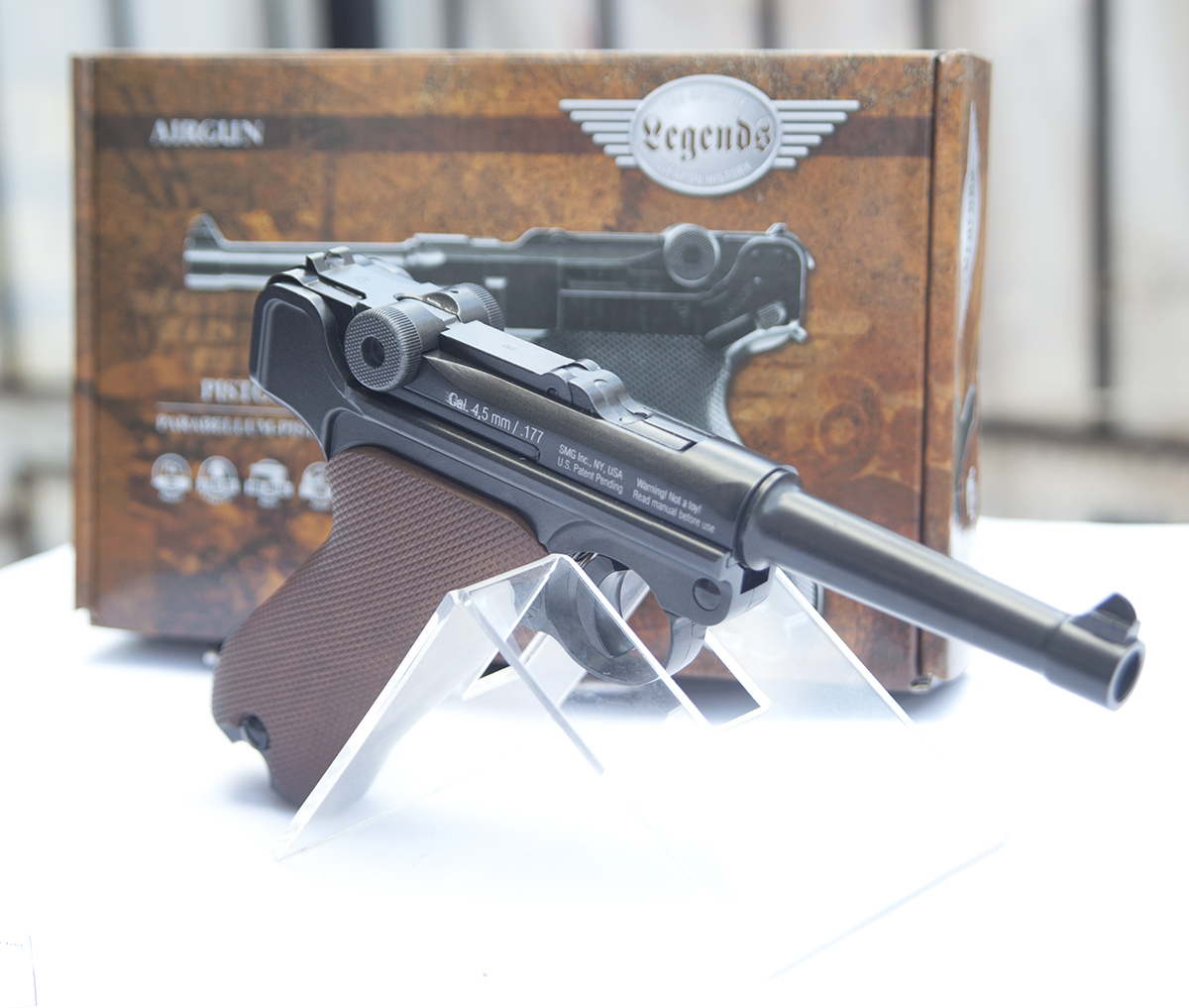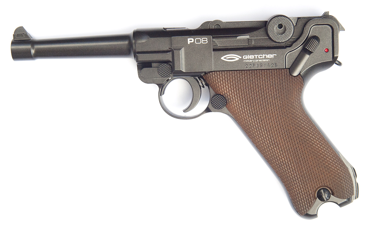 Пневматический пистолет Gletcher P08 (Глетчер П08) серийно производиться с 2013 года американской компанией Sport Manufacturing Group Inc. (SMG Inc.), которой и принадлежит торговая марка Gletcher. Пневматический пистолет Gletcher P08 стилизован под легендарный боевой пистолет Парабеллум П08 (Parabellum P08), и является наиболее точной пневматической копией этого знаменитого пистолета. Пистолет сделан из металла и по габаритам и массе идентичен боевому Парабеллуму П08. Для стрельбы из пистолета Глетчер П08 применяются сферические пули калибра 4,5 мм. Магазин вмещает 21 шарик, защелка магазина расположена у прилива спусковой скобы, там, где и на П08. В пистолетную рукоятку вставляется 12 граммовый баллончик с углекислотой. В оружии реализован принцип подвижного при стрельбе затвора (Blow Back), и при нажатии на спуск при выстреле колено рычагов складывается вверх, создавая отдачу. Флажок механического предохранителя расположен там же, где и у боевого парабеллума, сзади над рукояткой. ТТХ: |