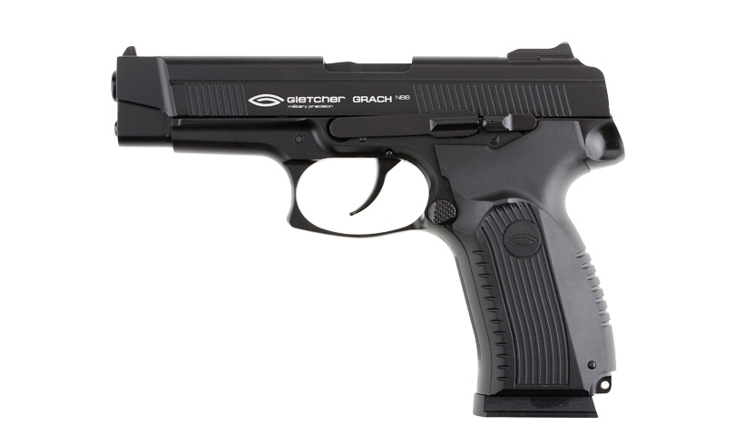 Газобаллонная гладкоствольная пневматика Gletcher Grach NBB является пневматическим аналогом российского огнестрельного самозарядной модели Ярыгина (ПЯ «Грач», Индекс ГРАУ 6П35), выпускаемого в 1993-2000 гг., стоящего на вооружении силовых ведомств с 2011г. Оружие Gletcher Grach NBB с потрясающим уровнем сходства копирует массо-габаритные параметры своего боевого аналога, имеет схожий ударно-спусковой механизм, предоставляющий возможность стрельбы самовзводом либо с предварительным взводом курка. Имеющийся двусторонний предохранитель, что очень удобно для стрельбы с как с правой, так и с левой руки, затвор подвижной конструкции без системы Blowback, позволяющий избегать перерасхода углекислого газа и уменьшения начальной скорости выстрела. Для стрельбы из пневматики остроконечные свинцовые пули не годятся. Подходят для этого пистолета только шарики типа ВВ. В процессе практических испытаний рассматриваемая пневматика показала себя прекрасно. Уровень комфорта стрельбы высокий, а точность пистолета выше всяких похвал. Корпус Gletcher Grach NBB отливается из металлического сплава, баллончик имеет скрытый поджимной винт, придающий отличную внешнюю схожесть с боевым оригиналом, магазин полноразмерный. |