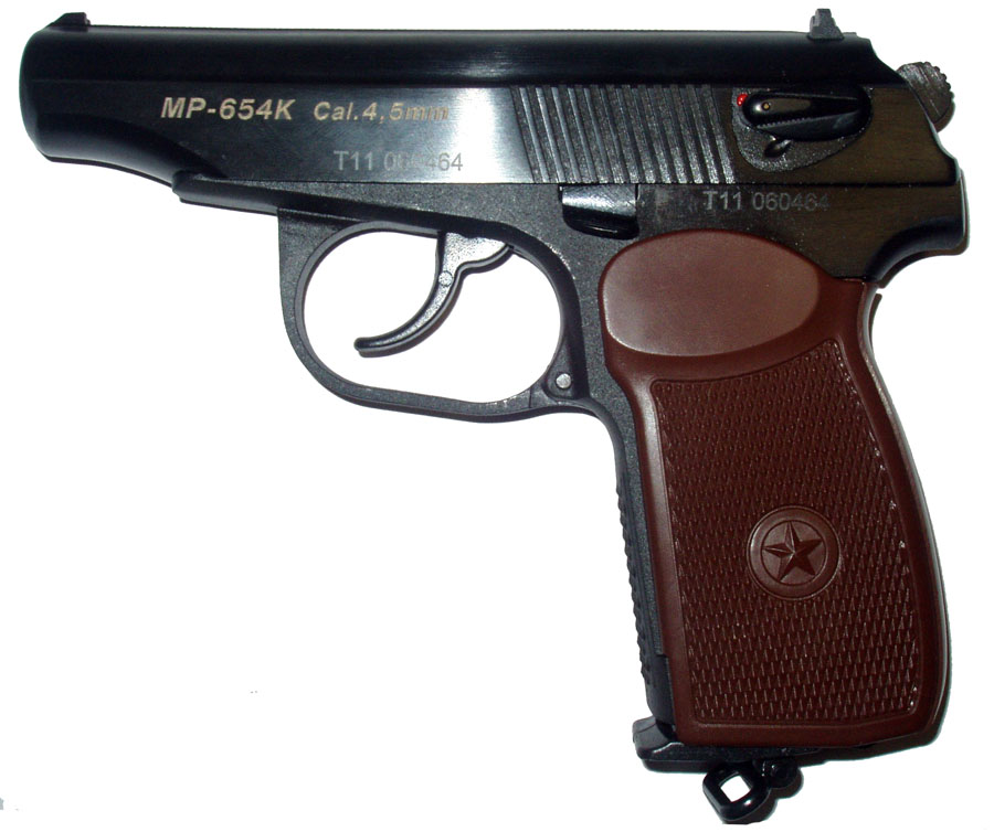 Пистолет пневматический МР-654К, с классической накладкой рукоятки от ПМ