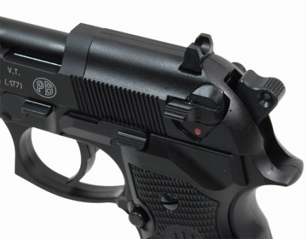 Система прицеливания M 92 FS состоит из неподвижной мушки и подвижного целика и при соответствующей регулировке пистолет имеет один из лучших показателей точности в своем классе. При желании на пистолет устанавливается коллиматорный или оптический прицел.