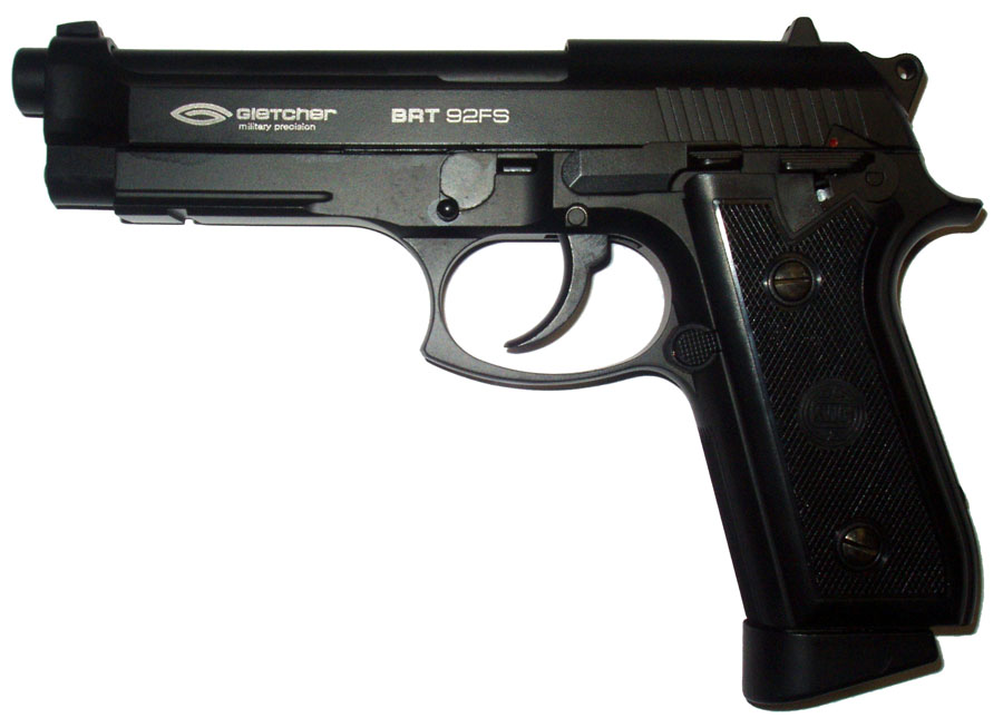 Вес, идентичный натуральному, подвижная затворная рама Blow-Back, взводной курок и затворная задержка имитируют стрельбу из настоящего огнестрельного оружия. Пистолет пневматический Gletcher BRT 92FS: