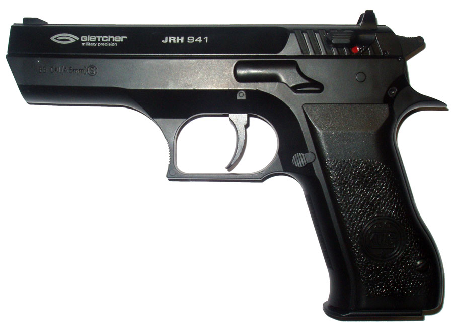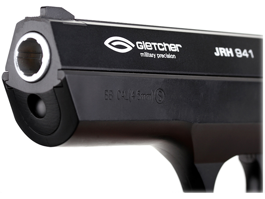Вес, идентичный оригиналу. Металлический затвор и флажковый предохранитель способствуют ещё большей схожести с боевым прототипом. Пистолет пневматический Gletcher JRH 941: — габаритные характеристики, идентичные оригиналу — вес, идентичный оригиналу — двусторонний предохранитель — ударно-спусковой механизм, обеспечивающий стрельбу только самовзводом (Double Action Only) — скрытый поджимной винт баллона, обеспечивающий большую визуальную схожесть с оригиналом Технические характеристики:
