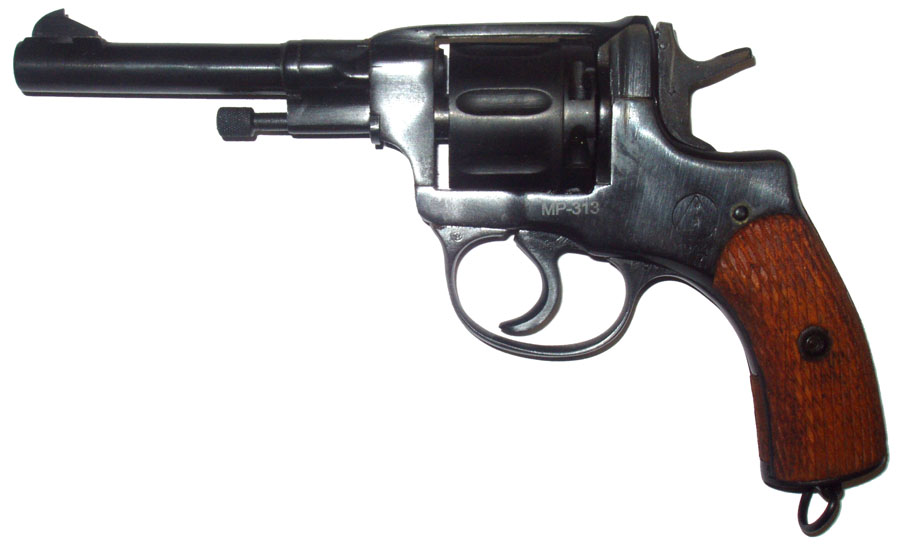 Предназначен для подачи звуковых сигналов. За основу взят револьвер системы «Наган» обр. 1895 г. Револьвер деактивирован из реального боевого образца. Данный револьвер — многозарядное неавтоматическое оружие, для работы механизмов которого используется мускульная сила стрелка. Револьвер имеет неподвижный имитатор ствола и вращающийся барабан. Барабан поворачивается при работе ударно-спускового механизма и обеспечивает подачу очередного капсюля на одну линию с осью имитатора ствола. Барабан съемный, имеет семь камер для помещения капсюлей. Фиксируется в рамке шомполом через ось барабана. Ударно-спусковой механизм двойного действия. Стрельба может вестись как самовзводом, так и при взведении курка от руки. Револьвер сигнальный MP-313 под капсюль-воспламенитель «Жевело» предназначен для подачи звуковых сигналов и пригоден для эксплуатации в районах с умеренным и холодным климатом. Технические характеристики: