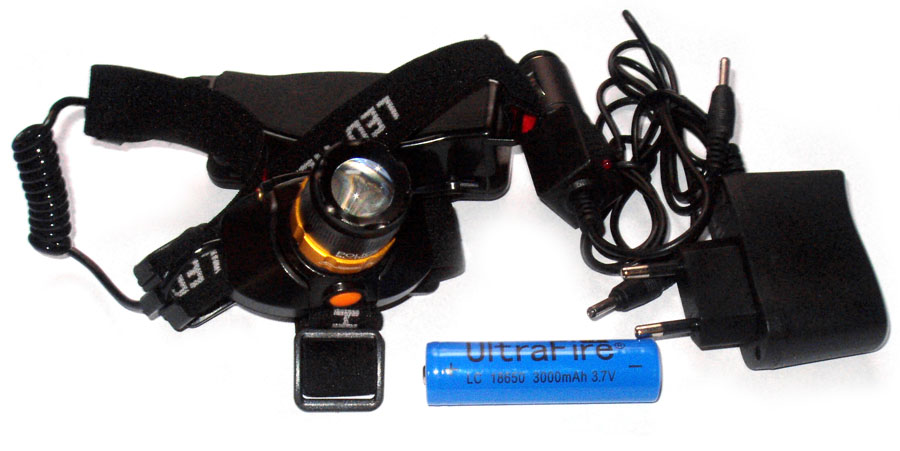 Налобный аккумуляторный фонарь с регулировкой фокусировки. 1 мощный планарный светодиод. |