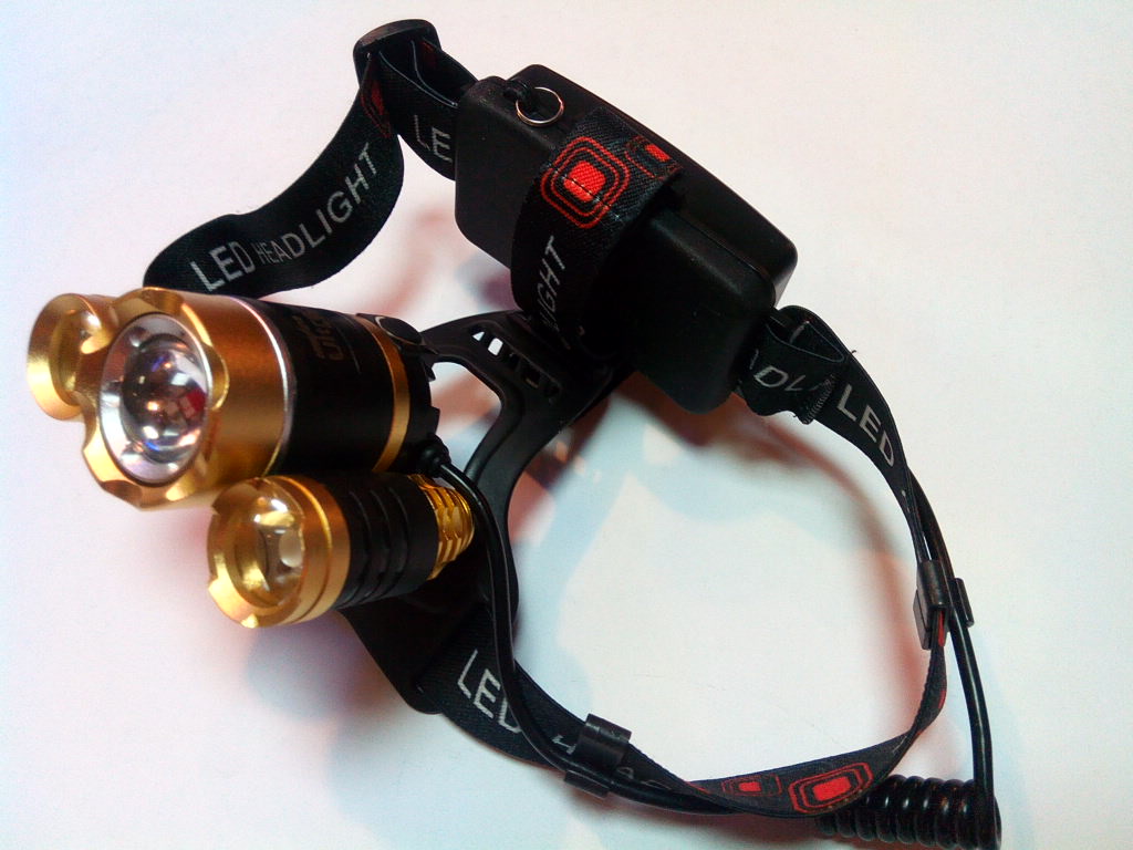 Фонарь светодиодный, аккумуляторный, наголовный, 2+1 диода. Max: 870 Lm |
