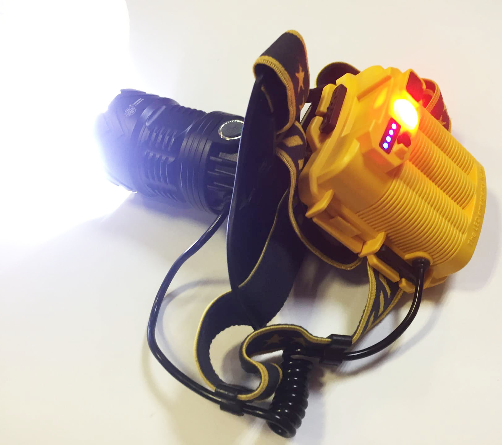 Фонарь на голову профессиональный светодиодный аккумуляторный с регулировкой диаметра светового пучка и кулером. Характеристики:
