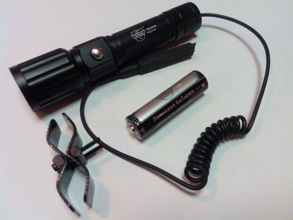 Фонарь светодиодный, аккумуляторный, подствольный, с регулирование светового пучка. |