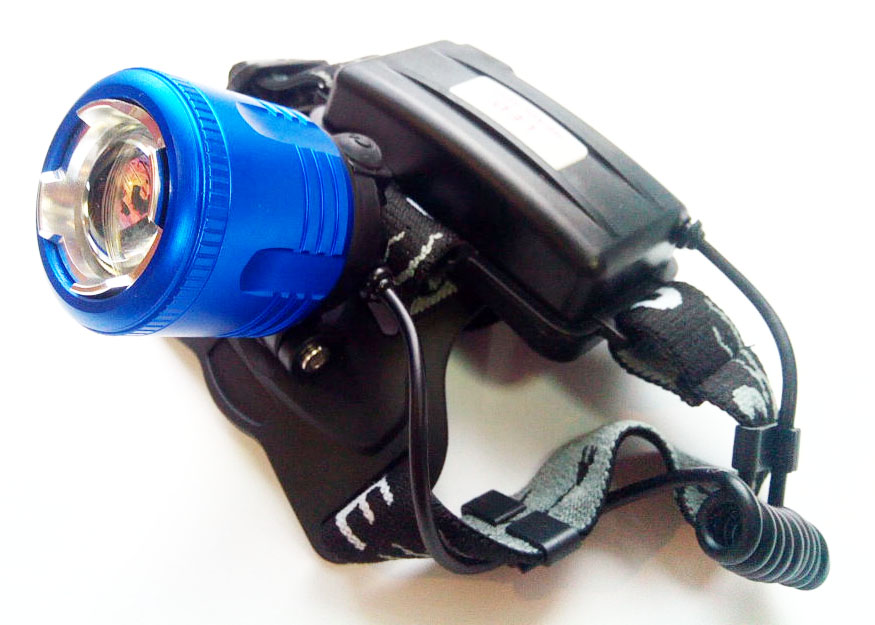 Аккумуляторный фонарь с регулировкой светового пучка и двойным светодиодом (белый и синий). Характеристики: