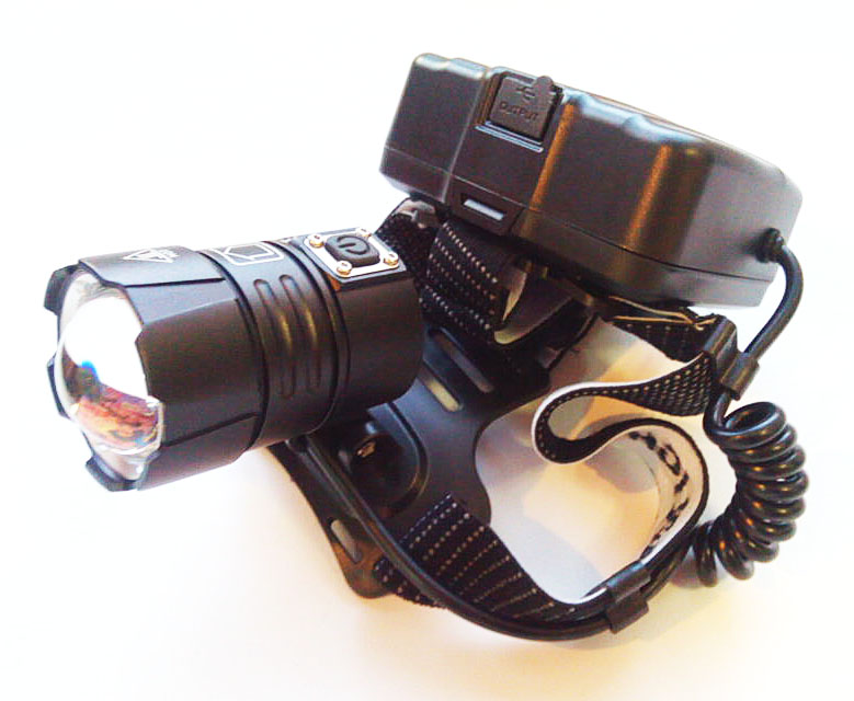Наголовный фонарь со сверхмощным светодиодом CREE LED XHP-50, с регулировкой диаметра светового пучка и двумя USB-портами. Характеристики:
