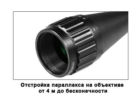 Просветляющее напыление, минимизирующее отраженный свет, и светосильный объектив 40 мм делают изображение четким и ярким. Отстройка от параллакса в прицеле Leapers 3-9x40 осуществляется регулировочным кольцом на объективе - от 5 ярдов (4,5 метров). Оптический прицел Leapers 3-9x40 обеспечивает поле зрения 10,5 метров для кратности увеличения 3Х и 3,5 метров - для девятикратного увеличения 9Х. Кольцо переключения кратности снабжено эргономичным рифлением. Предусмотрена возможность диоптрийной корректировки по глазу стрелка. Удаление выходного зрачка варьируется от 9,9 см (для 3Х) до 8,1 см (для 9Х). Для определения дистанции и точного прицеливания служит сетка Mil-dot с расширенным диапазоном в девять точек. Высокоточные барабанчики системы ввода поправок смещают точку попадания за один щелчок на четверть угловой минуты (¼ МОА), что соответствует 6,4 мм на дистанции 100 ярдов (7,3 мм на 100 метров). На барабанчиках предусмотрено кольцо блокировки нуля. Комплект дополнен эргономичными кольцами Max Strength (RG2W3204) и крышками flip-open. Расшифровка кодировки прицела SCP-U394AOIEW: